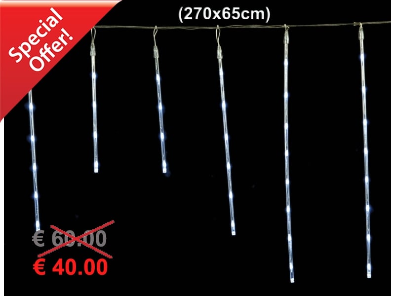 108L White Icicle LED Curtain with clear plastic tube & end connector (270x65cm)