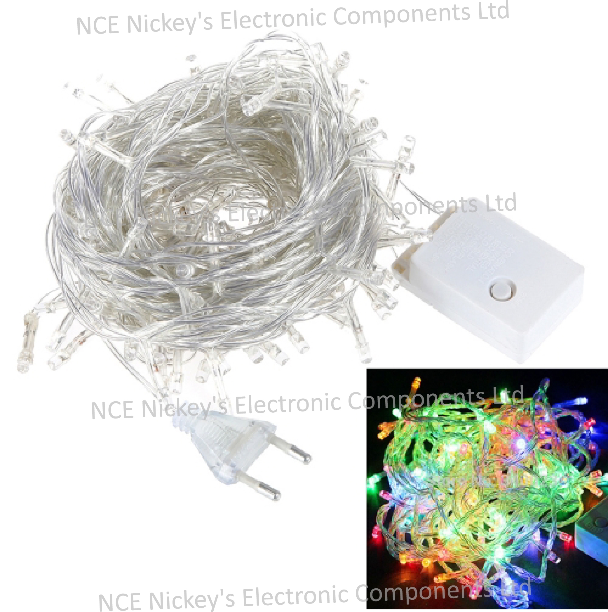 180 LED Multi-color String Light (IP44), AC In.: 220-240V, Legth: 18m, Transparent cable