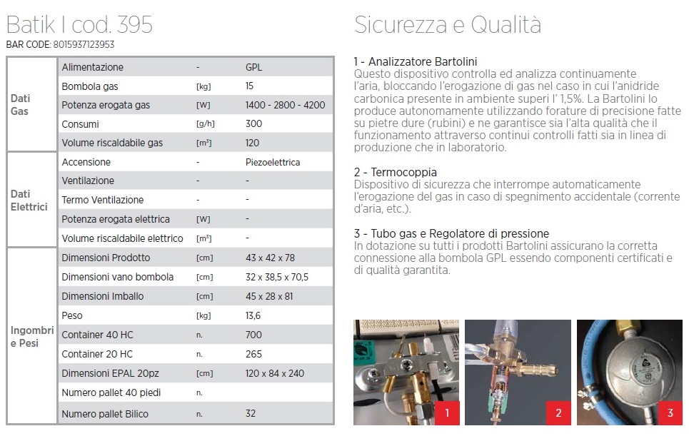 Bartolini’s Bella design gas heater operates on standard 5 or 11 kg camping gas bottles. The Bella I is equipped with an oxygen shortage protector, flame monitor, and a piezo igniter. The heater can used in well ventilated spaces, inside and outside and creates a pleasant radiant heat. Available in various colours. The Bella I is not suitable for bathrooms, bedrooms or as continuous heating. Made in Italy.