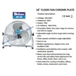 Diameter: 18” Power: 75W 3 Speed options 3 Blades With vertical tilt (up and down)
