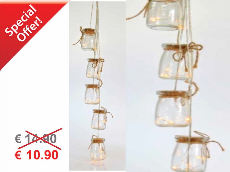 5pcs Decorative Jars with 15pcs Warm White LED (Battery Operated)
