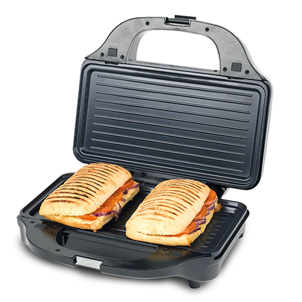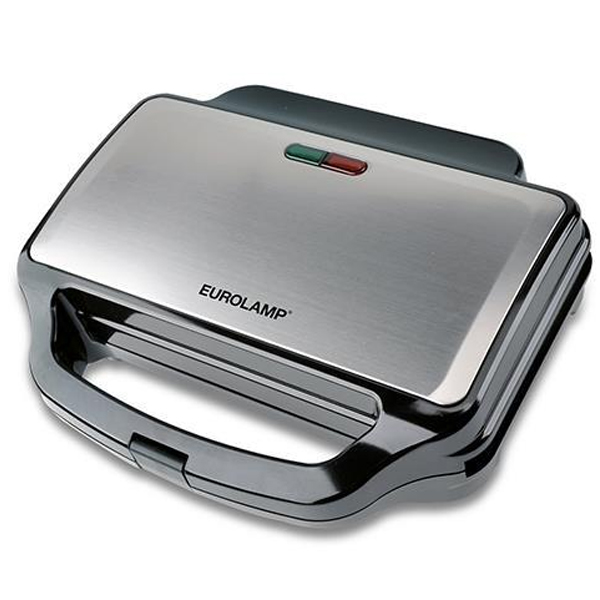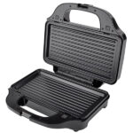 EUROLAMP Sandwich Maker with Detachable Grill Plates FOR 2 TOASTS 900W – Black Inox