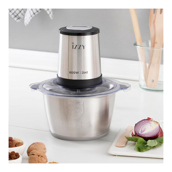 Multi chopper IZ-6904, by Izzy, with a power of 600 Watts. It is suitable for chopping, mincing, grating, or even pureeing your ingredients, unlike a blender which mainly liquefies them. It is ideal for processing vegetables, and it is equally useful for grating cheeses, as well as bread and chocolate.