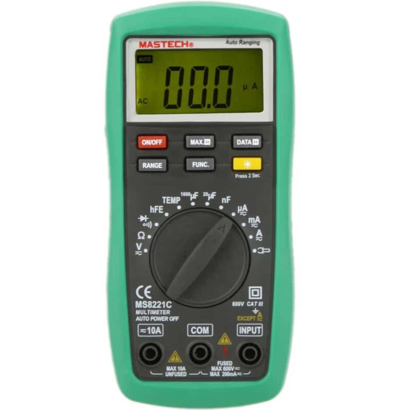 Autoranging and 2000 counts LCD Display with LCD backlight.
