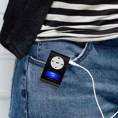 TF (Micro SD) Card Slot MP3 Player with LCD Screen, Metal Clip (Black)